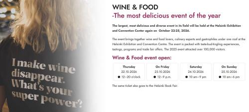Près de 105 000 visiteurs se sont rendus au Parc des Expositions d'Helsinki, et nous estimons que les deux tiers d'entre eux ont visité le salon des vins.