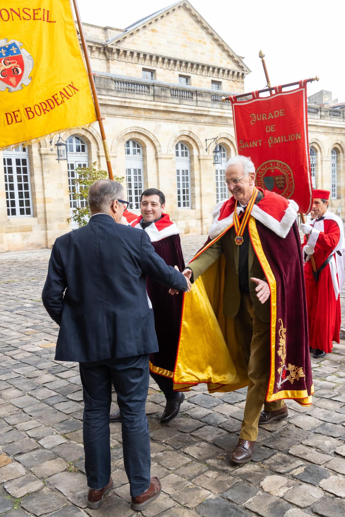 On 14 January 2026, the Grand Conseil du Vin de Bordeaux, accompanied by the Bordeaux wine brotherhoods, presented its New Year's greetings to the Mayor of Bordeaux during the annual ceremony in which members paraded from the CIVB to the City Hall, dressed in their robes and carrying their banners in a convivial atmosphere.