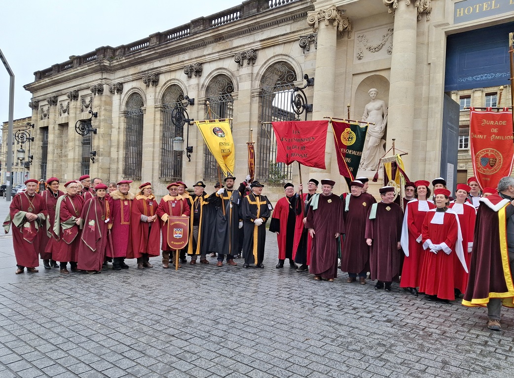 A la suite de cette rencontre, le Grand Maître du GCVB et les représentants de nombreuses confréries bordelaises ont défilé dans les rues de Bordeaux pour aller à la Mairie de Bordeaux pour présenter leurs vœux du nouvel an 2025 au Maire, Mr Pierre Hurmic.