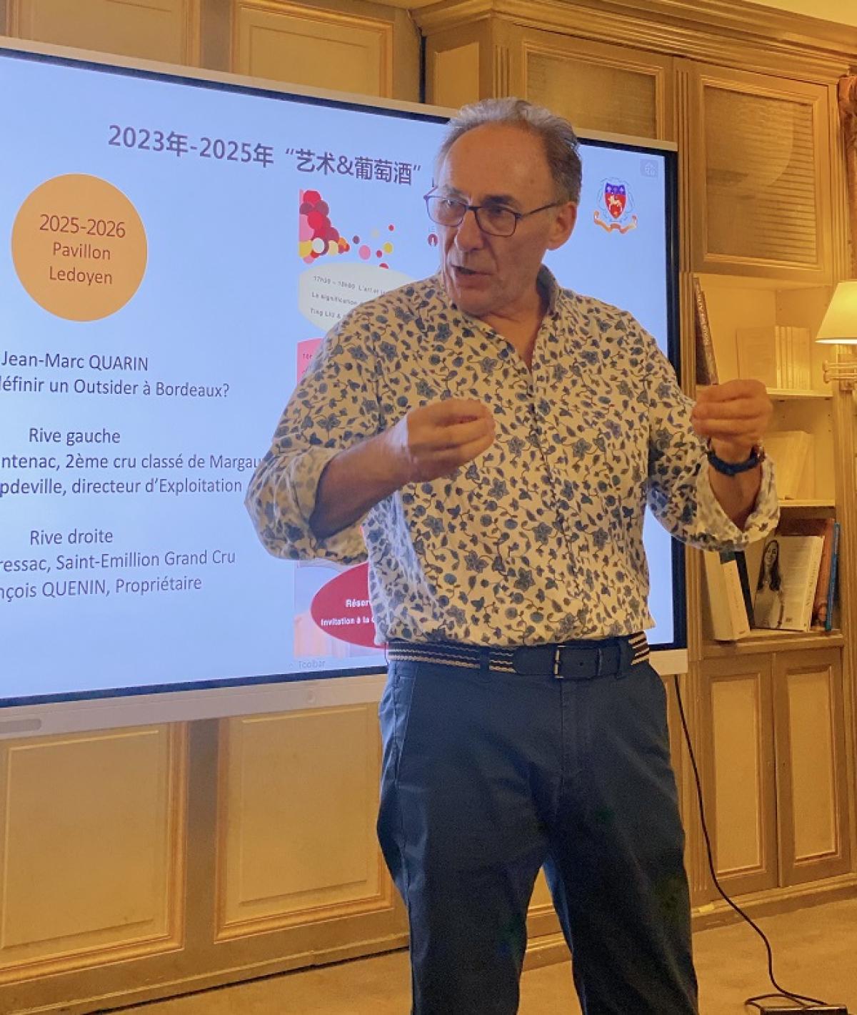 Fabrice Léger 先生首先介绍了 Le Salon des Outsiders 的创立背景及其核心精神;Jean-Marc Quarin 则从专业品鉴者的角度阐述了如何独立甄选品质卓越、且不受市场趋势左右的优秀葡萄酒,无论价格从几欧至上千欧甚至更高,都能以专业方法识别其真实价值。