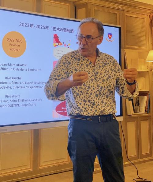 M. Fabrice Léger a d’abord présenté l’origine et l’esprit fondateur du Salon des Outsiders. M. Jean-Marc Quarin, quant à lui, a expliqué, en tant que dégustateur professionnel, comment sélectionner de manière indépendante des vins d’excellence, non influencés par les tendances du marché, dont les prix peuvent varier de quelques euros à plusieurs centaines ou milliers d’euros, tout en restant capables d’identifier leur valeur réelle.