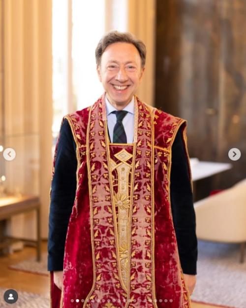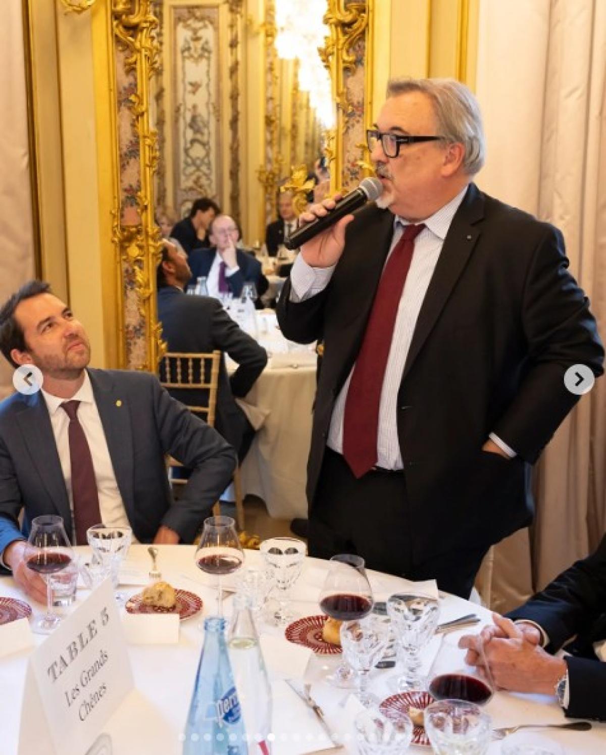 À l’occasion de la Saint-Clément, célébrée au restaurant Ducasse Baccarat à Paris, Bernard Magrez a eu l’honneur de consacrer Stéphane Bern, en lui décernant le titre de "Pape du Patrimoine".