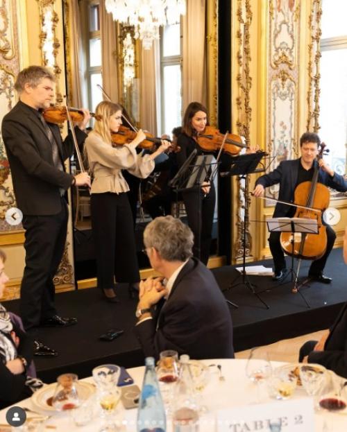 Le Quatuor du Château Pape Clément a sublimé le déjeuner en redonnant vie à quatre instruments historiques classés Trésors Mondiaux, dont un authentique violon Stradivarius placé sous notre mécénat.