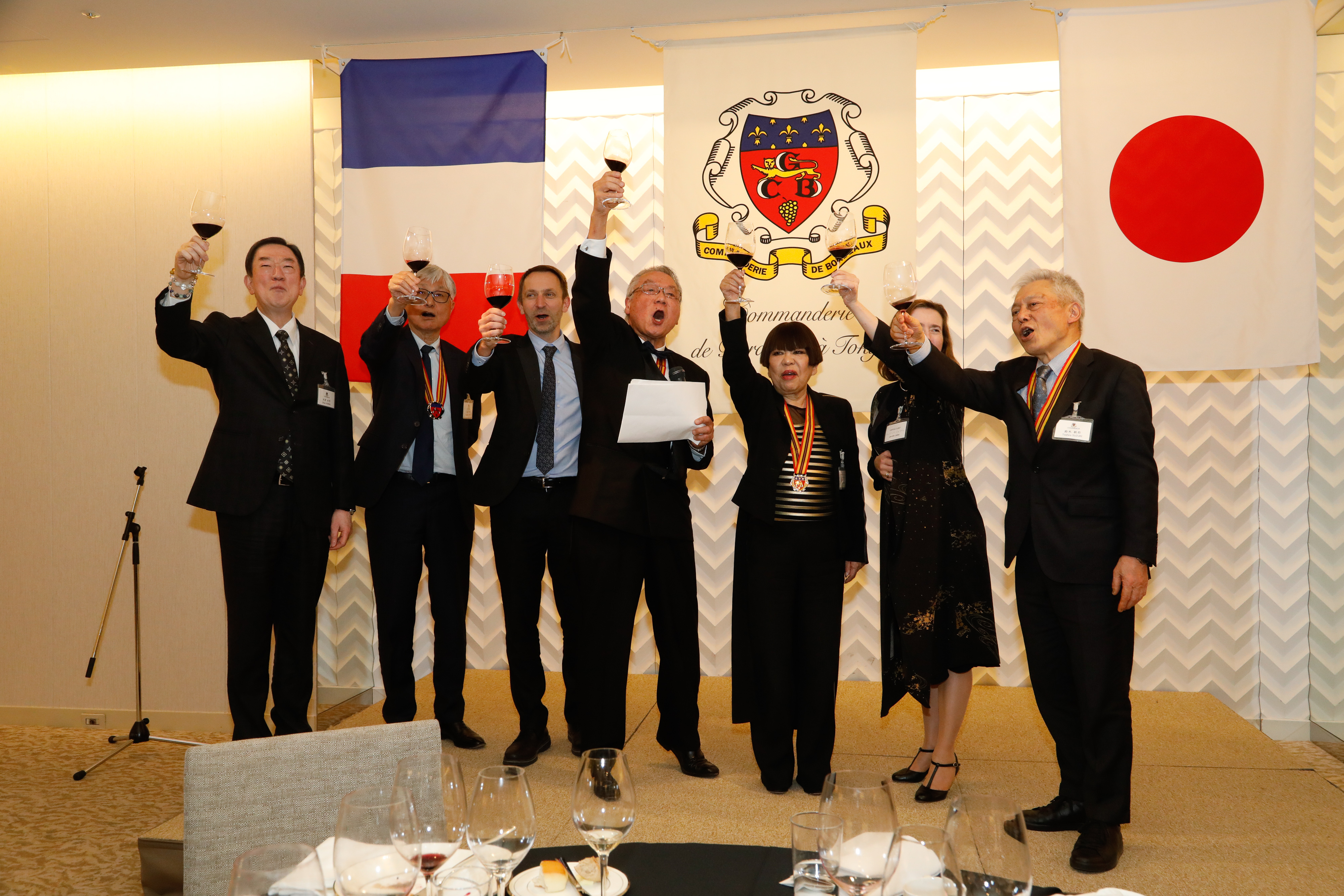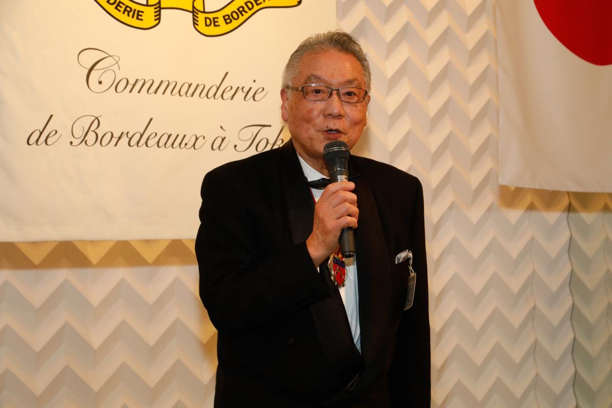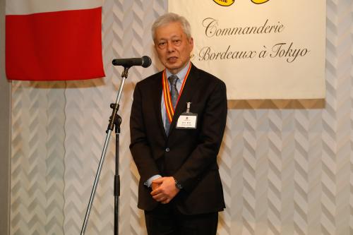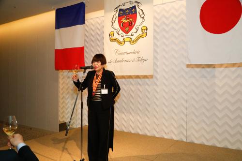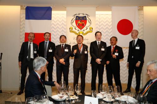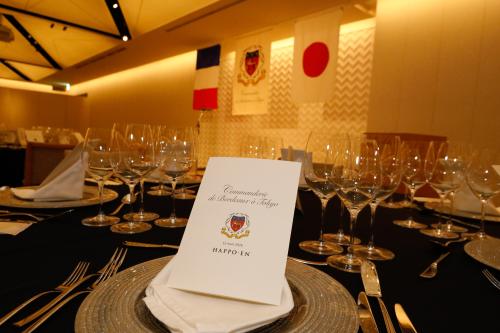 La soirée s’est poursuivie par le dîner annuel au cours duquel la Commanderie a eu le plaisir d’accueillir Mme Jennifer Julian, ambassadrice de Château Clinet, Mme Diane Hyatt, commandeur de San Diego (États-Unis), M. Guillaume Fleurie, conseiller agricole à l’ambassade de France au Japon, ainsi que Mme Junko Kosino, ambassadrice d’honneur des vins de Bordeaux.