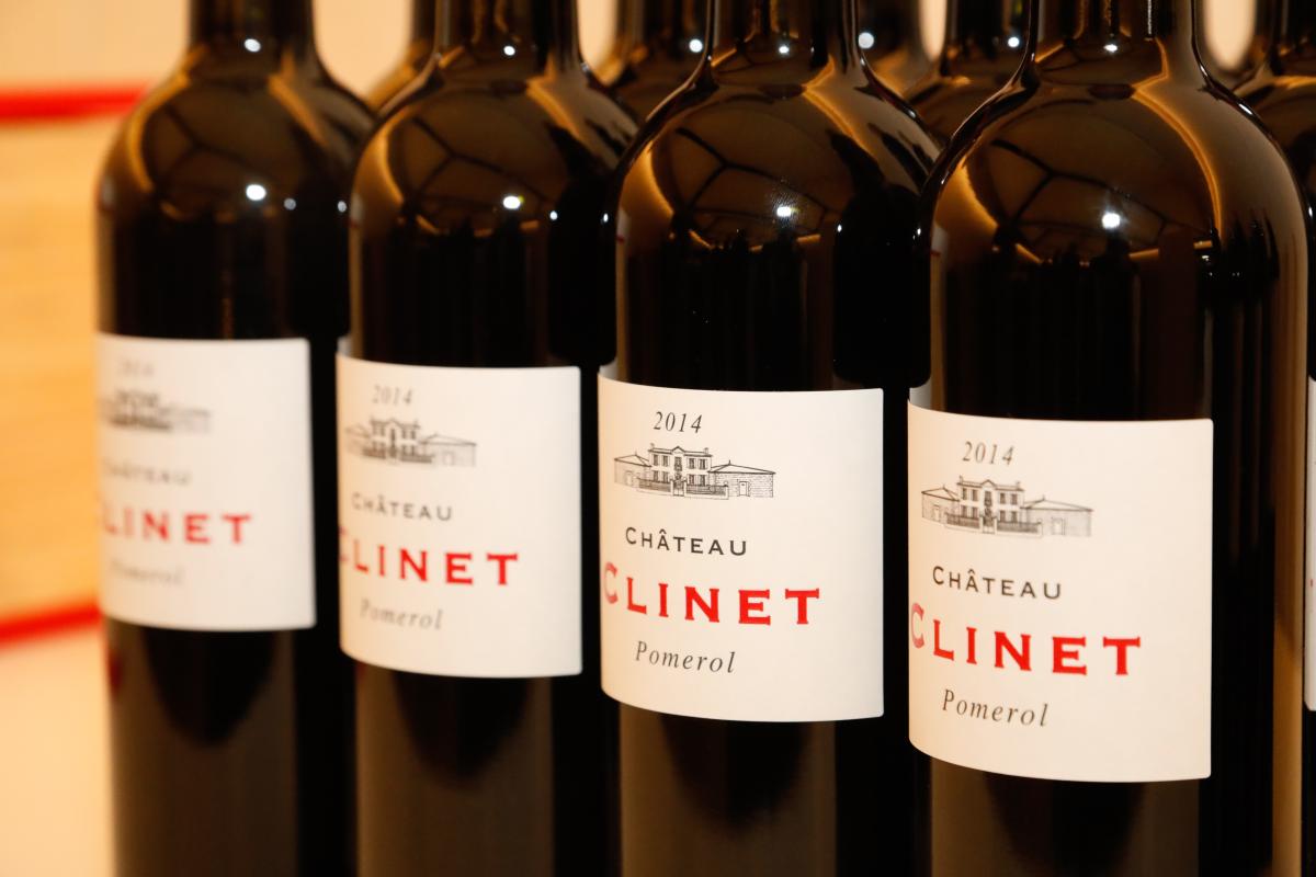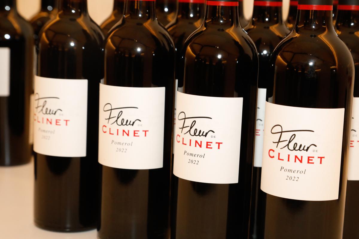 La carte des vins servis comprenait : Ronan by Clinet Blanc 2022, Fleur de Clinet 2022, Château Clinet 2018 et Château Clinet 2014.