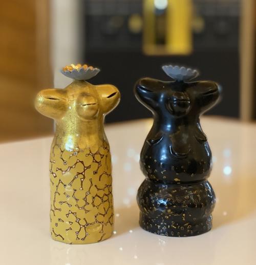 This evening brought together two artists who seem to be complete opposites, yet who complement each other perfectly: Kartini Thomas, a French-American ceramic sculptor with a playful and organic language, and Liu Xueshan, a Chinese lacquer artist with a patient and age-old gesture. Together, they unveil a unique collection of natural lacquer sculptures, the result of a rare collaboration, which blends Western fantasy and Asian artisanal tradition.