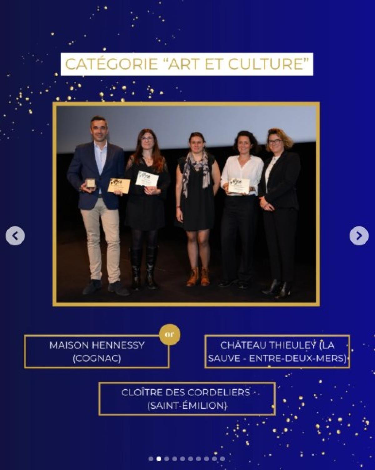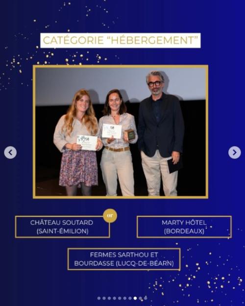 21 businesses from the Nouvelle-Aquitaine region were singled out for awards (including 8 Gold trophies and one Jury's Choice award) for the authenticity and quality of the wine tourism experiences they provide, as well as the innovative approach they take to promoting local heritage, each in their own unique way. The "Best Of Gold" winners then competed against the winners from other "great wine regions", which are members of the Great Wine Capitals network. Among them, La Maison Cardinale (Saint-Étienne-de-Lisse) received an international award in the "Discovery and Innovation" category.