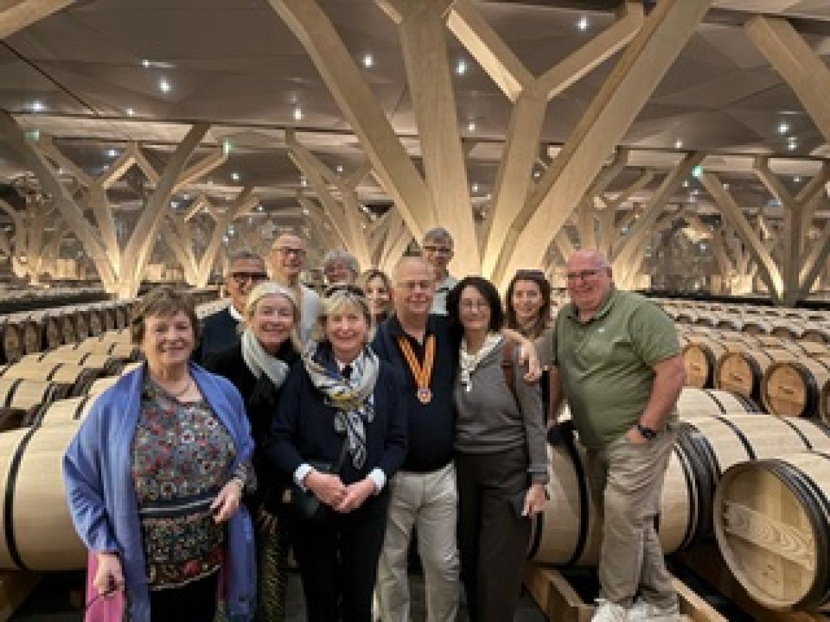 Last October, we took a trip to the Bordeaux region with 12 Commandeurs, a wonderful opportunity to visit several wine estates, participate in the Saint-Émilion harvest festival, and enjoy some superb wine tasting and gastronomic experiences. Here is a photo of the group taken in the magnificent cellars of Château Talbot.