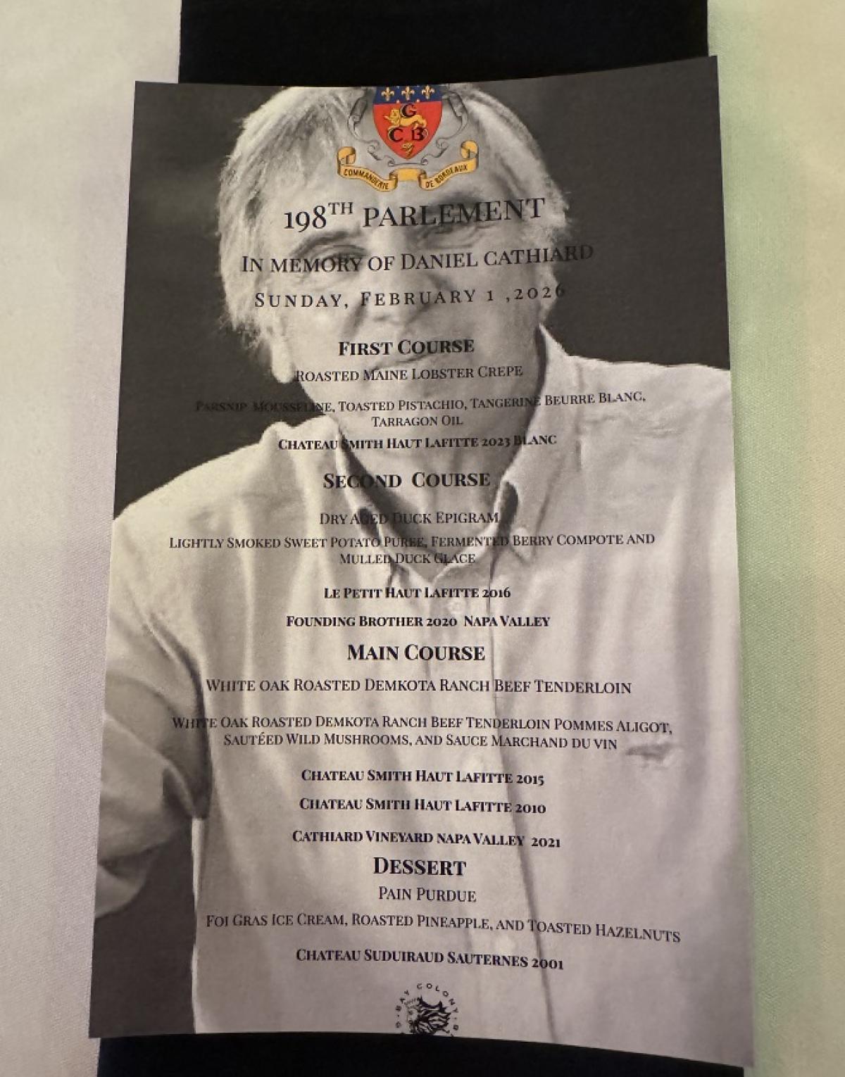 February 9, 2026Commanderie de Bordeaux in Naples, Florida. Dinner held in Memory of Daniel Cathiard