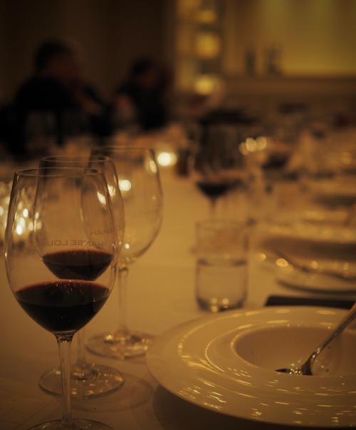 The tasting was structured in several sequences: an initial white wine, followed by three flights of red wines served alongside the courses, and finally a sweet wine to conclude the evening.