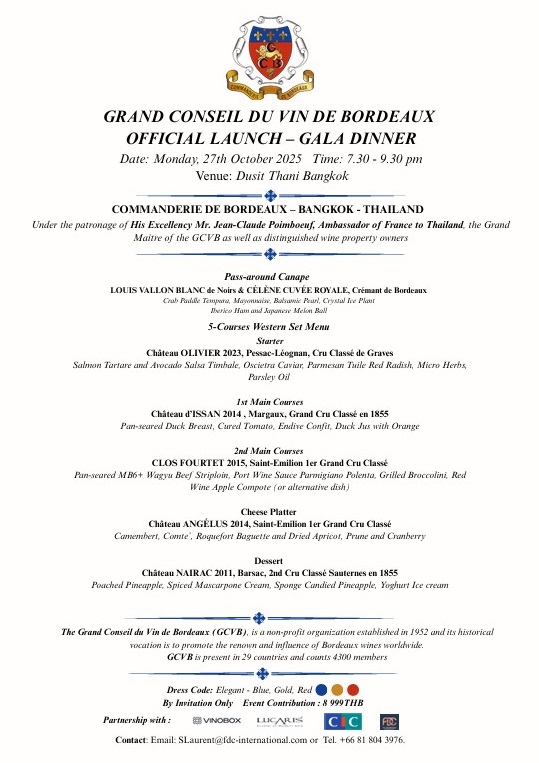 Coming soon - Opening of the Commanderie de Bordeaux in Thailand