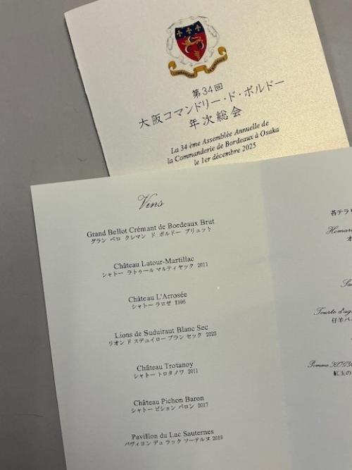 December 1, 2025Commanderie de Bordeaux in Osaka. Annual Meeting and Gala Dinner, 1st December 2025