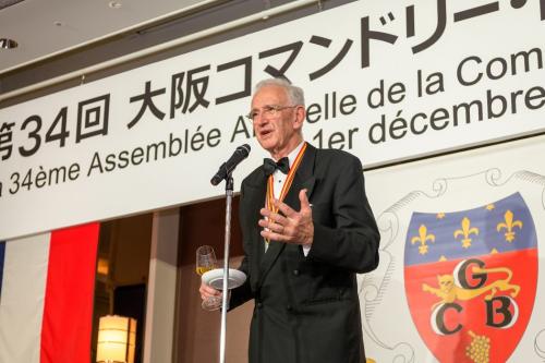 The Gala Dinner began by an opening speech by Mr. Yoshiki TSUJI, Maître of the Commanderie de Bordeaux in Osaka, and a toast given by Mr.Yasushi MISAWA, Representative of the Government of Japan, Ambassador in charge of Kansai