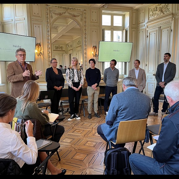 Les représentants de l'ODG Médoc, Haut-Médoc et Listrac-Médoc, accompagnés de vignerons médocains, ont présenté le 14 octobre, lors d'une conférence de presse, la couleur "Médoc blanc", officiellement intégrée depuis août dernier au cahier des charges de l'AOC Médoc. Les premières commercialisations du millésime 2025 sont attendues pour le 15 avril 2026.