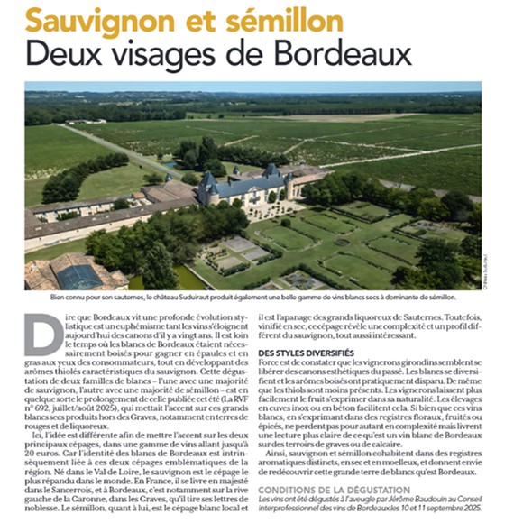 Vendredi 07 Novembre 2025Les blancs de Bordeaux dans la "Revue du Vin de France"