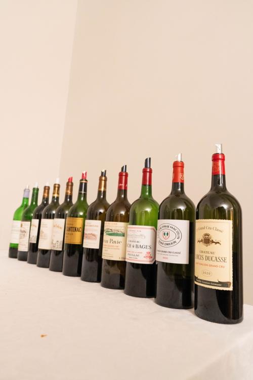 The wines served included: Château La Clusière 1970, Château Rausan-Ségla 1986, Château Bellefont-Belcier 2014, Château Les Carmes Haut-Brion 2014, Château Bellefont-Belcier 2015, Château Brane-Cantenac 2015, Château Tour Saint Christophe 2020, Château Pavie 2005, Château Lynch-Bages 2020, Château Pavie Macquin 2020, Château Larcis Ducasse 2020, and Château Bastor-Lamontagne 2022.